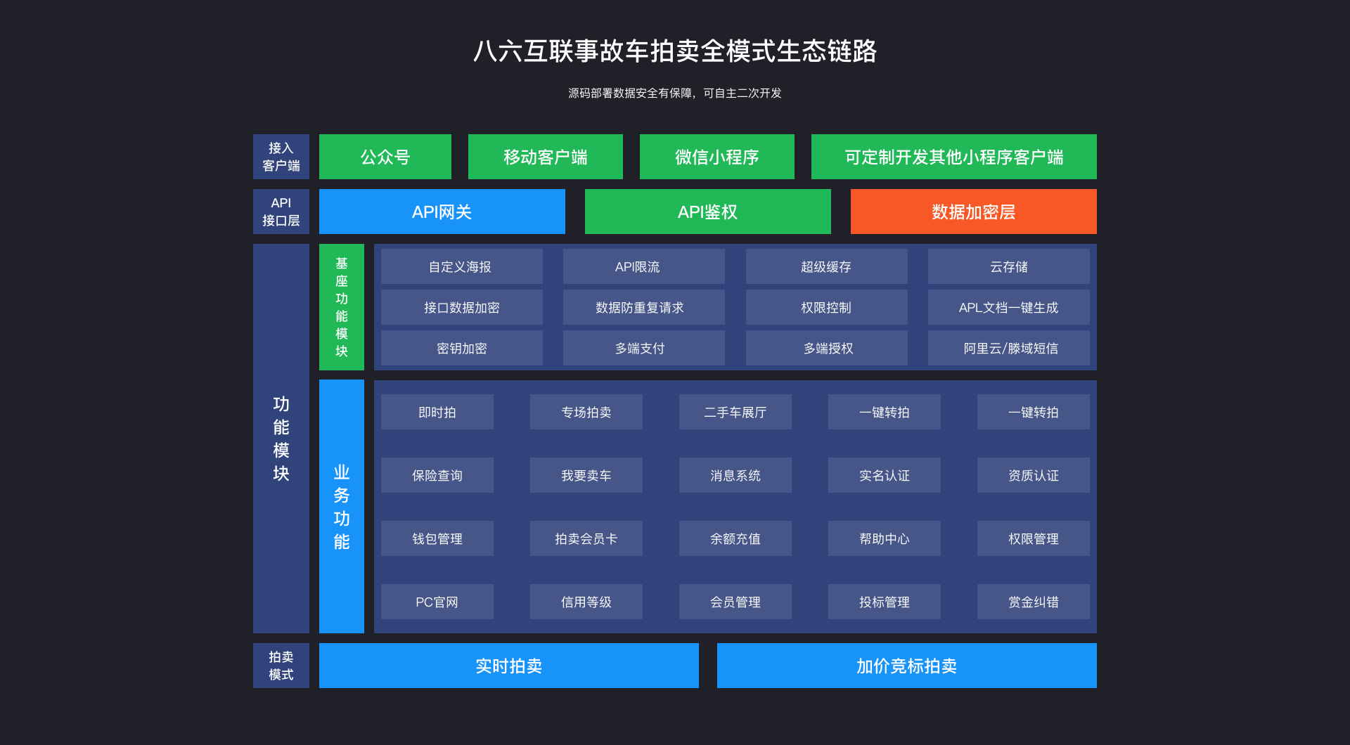 事故车拍卖系统全渠道多终端覆盖,完善技术架构支撑企业级服务,支持开发+源码部署