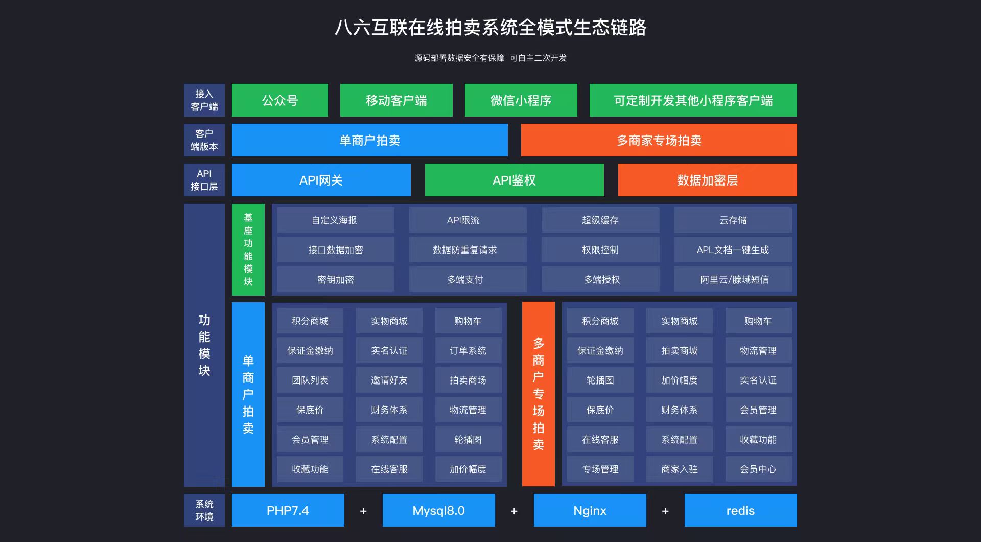 在线拍卖系统全渠道多终端覆盖,完善技术架构支撑企业级服务,支持开发+源的部署