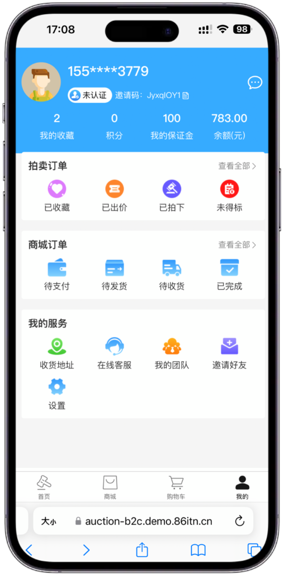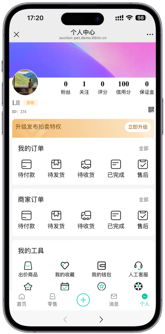 多商户拍卖系统功能页面展示