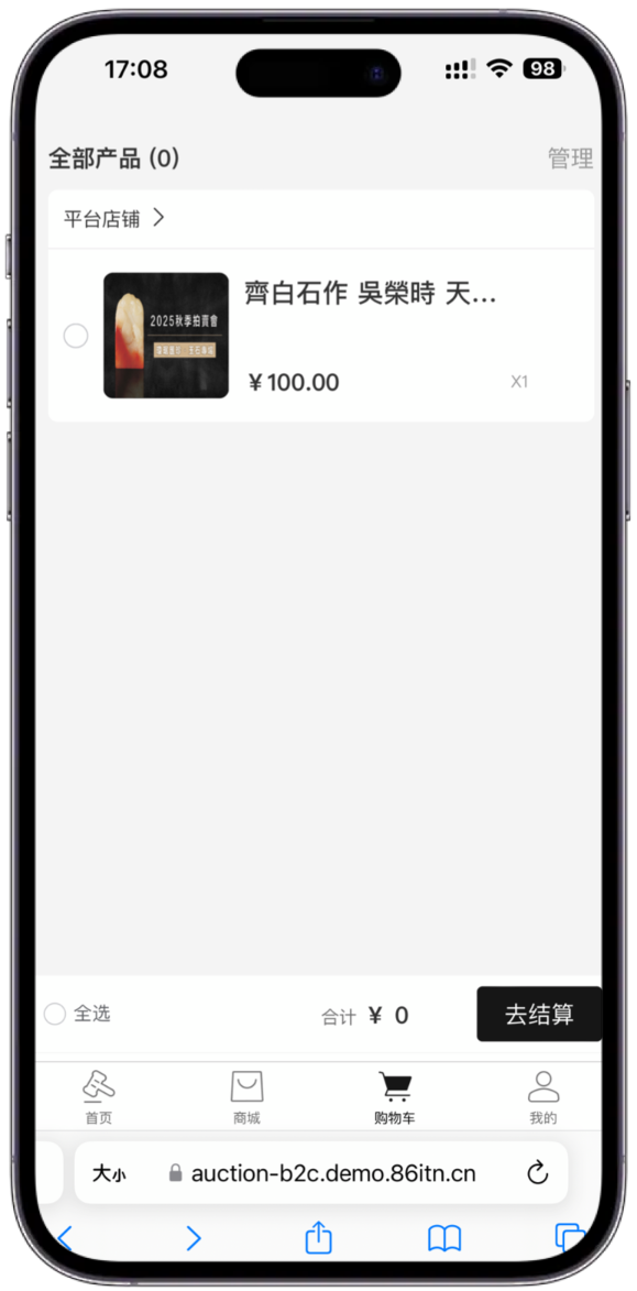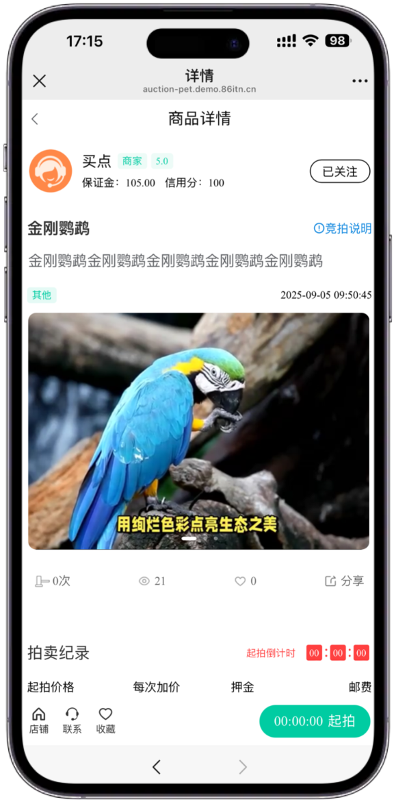 单商户拍卖系统功能页面展示